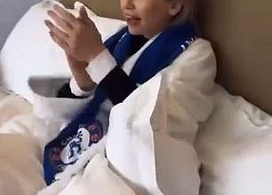 Chelsea fans fume after video emerges of Georgia Toffolo watching the team play from a BED at Stamford Bridge in an ’embarrassing’ marketing stunt for Hilton hotels