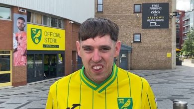Norwich City fan trolled with memes over his looks is left ‘overwhelmed’ after supporters rallied around to take his £500 cancer charity fundraiser to a £44,000 total