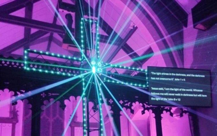 This year’s “Light in the Darkness” event represented a more ambitious vision, developed in partnership with Fox Events. Revd Dave Hanson described how they created a luminous pathway across the churchyard leading visitors toward the church entrance. Once inside, attendees encountered an impressive steel cross fitted with disco ball fragments that scattered colored light beams throughout the sacred space. The atmosphere was thoughtfully crafted with ambient music playing softly in the background, the gentle scent of incense wafting through the air, and Bible verses displayed on screens. The sensory experience was designed to be both welcoming to those who might never normally enter a church building and spiritually meaningful for those open to reflection. In this way, the church created a space that honored both the celebratory aspect of Halloween and its historical connection to All Hallows’ Eve—the night before All Saints’ Day in the Christian calendar.